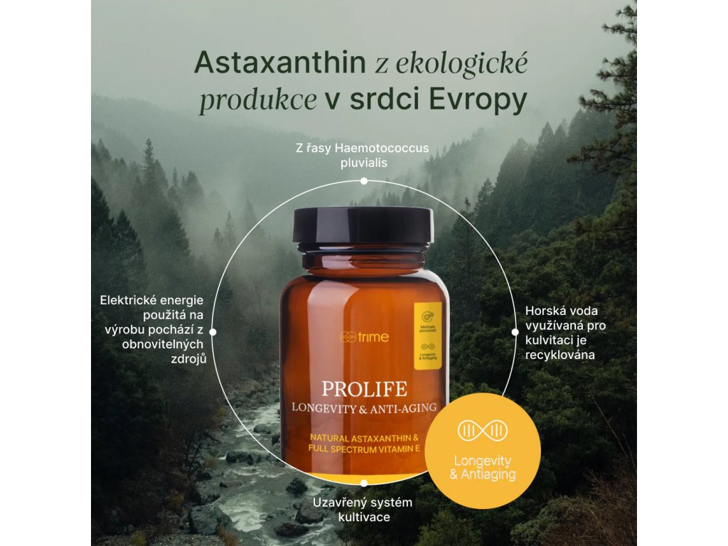 - Bio Astaxanthin - vzácné barvivo ze skupiny karotenoidů, které je přirozenou součástí humrů, lososů nebo mořských řas, které si astaxanthin tvoří jako ochranu před neblahými vlivy vnějšího prostředí (UV záření, atd.). Zdrojem astaxanthinu pro náš produkt je mikrořasa Haematococcus pluvialis, pěstovaná v přísně kontrolovaných podmínkách a v uzavřeném systému kultivace, který zamezuje vliv kontaminantů z vnějšího prostředí. Proces kultivace splňuje podmínky bio výroby a extrakce čistého přírodního astaxanthinu probíhá zcela bez chemikálií. Toto vzácné přírodní barvivo ze skupiny karotenoidů získáváme z mikrořasy Haematococcus pluvialis, pocházející z ekologické kultivace, v bio kvalitě. Uzavřený systém pěstování a přísně kontrolované podmínky umožňují získat absolutně čistý přírodní antioxidant.