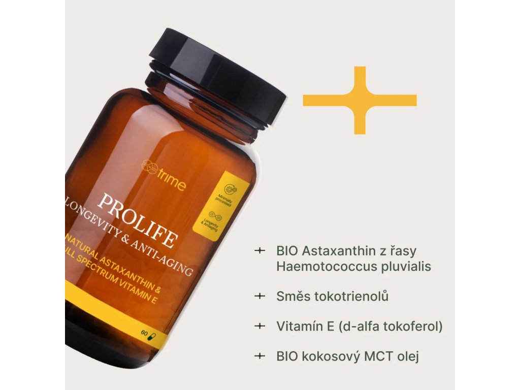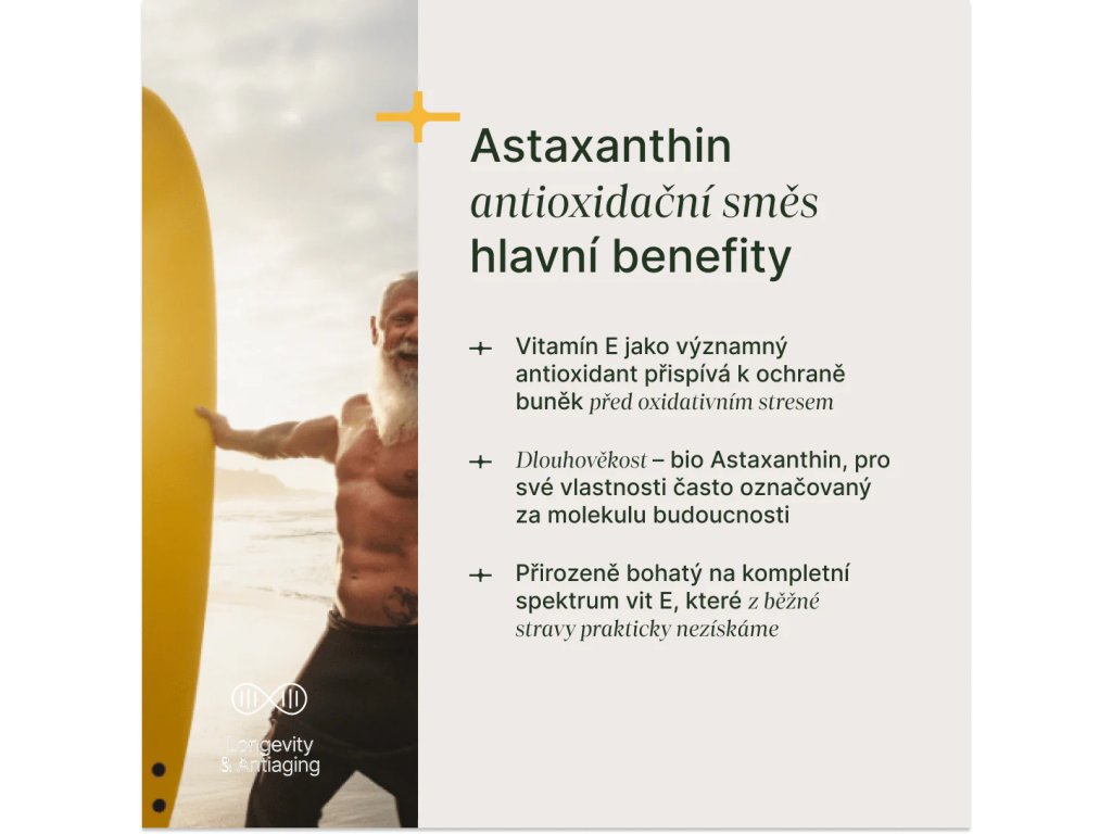 - speciální dvousložková směs s obsahem plnospektrálního přírodního vitamínu E (směs tokoferolů a tokotrienolů) a cenného bio Astaxanthinu