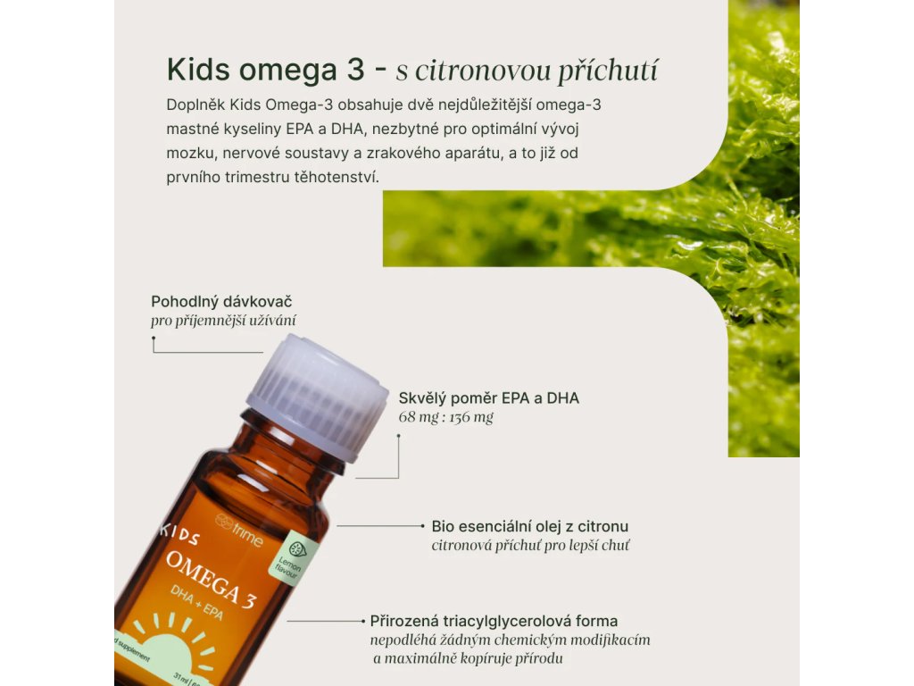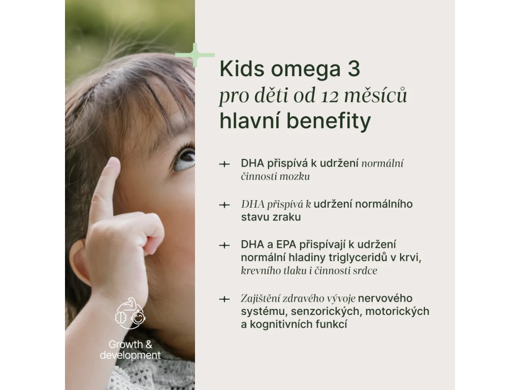 Omega-3 mastné kyseliny jsou pro člověka naprosto klíčovou esenciální živinou. Hlavní aktivní složka DHA (kyselina dokosahexaenová) je velmi důležitá pro optimální vývoj mozkových funkcí a zrakového aparátu dětí, a to již od prvního trimestru těhotenství.